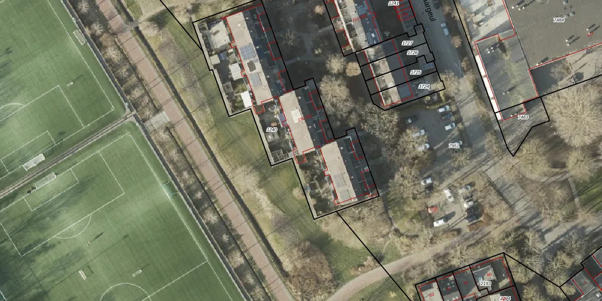 Het perceel waarop Vaargeul 250 staat heeft een oppervlakte van 1777 m². Dit is een zeer groot perceel. De perceeloppervlakte wordt geregistreerd door het Kadaster. Gedetailleerde informatie over de maten van dit perceel kunt u vinden in het rapport Kadastrale kaart met maatvoering van Vaargeul 250.
