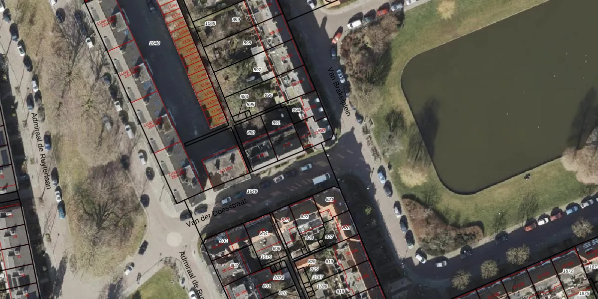 Het perceel waarop Van der Doesstraat 1-b staat heeft een oppervlakte van 150 m². Dit is een middelgroot perceel. De perceeloppervlakte wordt geregistreerd door het Kadaster. Gedetailleerde informatie over de maten van dit perceel kunt u vinden in het rapport Kadastrale kaart met maatvoering van Van der Doesstraat 1-b.