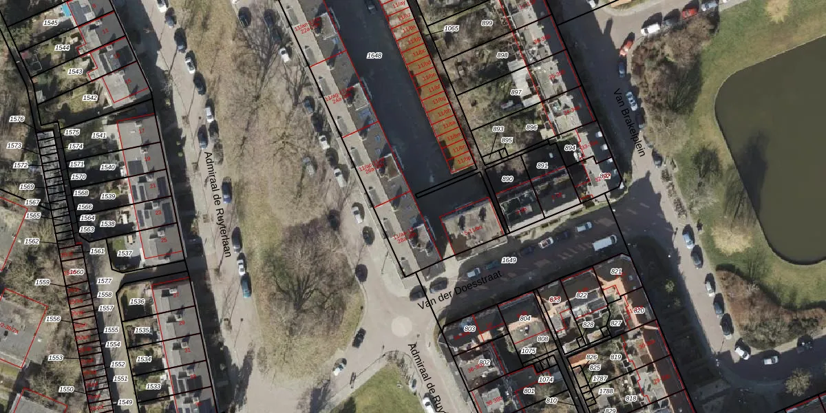 Het perceel waarop Van der Doesstraat 11-aa staat heeft een oppervlakte van 2260 m². Dit is een zeer groot perceel. De perceeloppervlakte wordt geregistreerd door het Kadaster. Gedetailleerde informatie over de maten van dit perceel kunt u vinden in het rapport Kadastrale kaart met maatvoering van Van der Doesstraat 11-aa.