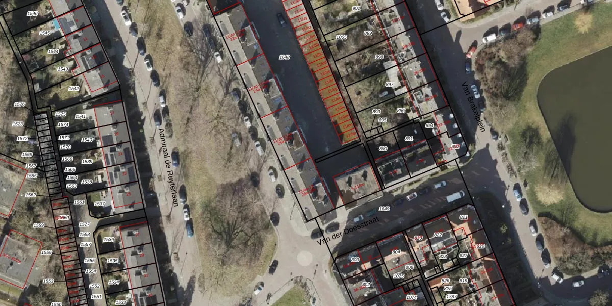 Het perceel waarop Van der Doesstraat 11-ac staat heeft een oppervlakte van 2260 m². Dit is een zeer groot perceel. De perceeloppervlakte wordt geregistreerd door het Kadaster. Gedetailleerde informatie over de maten van dit perceel kunt u vinden in het rapport Kadastrale kaart met maatvoering van Van der Doesstraat 11-ac.