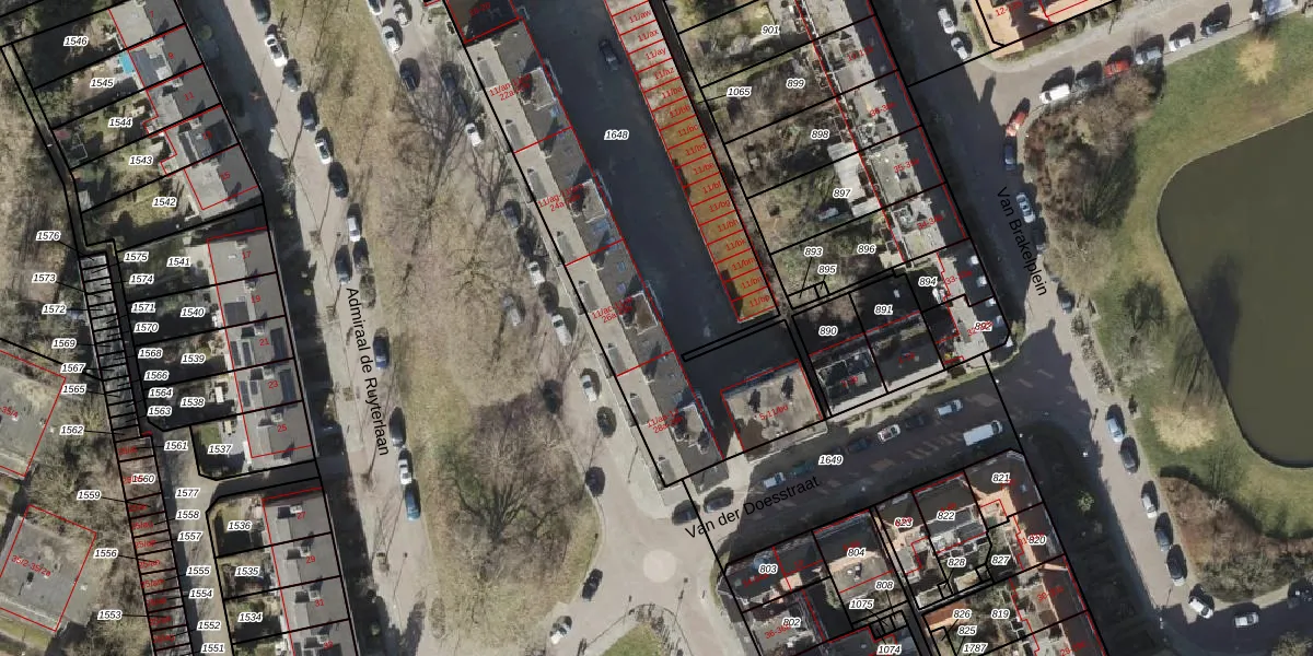 Het perceel waarop Van der Doesstraat 11-ad staat heeft een oppervlakte van 2260 m². Dit is een zeer groot perceel. De perceeloppervlakte wordt geregistreerd door het Kadaster. Gedetailleerde informatie over de maten van dit perceel kunt u vinden in het rapport Kadastrale kaart met maatvoering van Van der Doesstraat 11-ad.