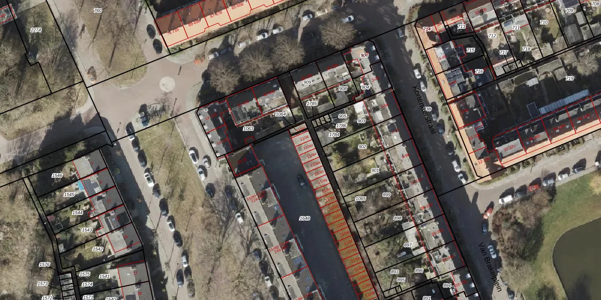 Het perceel waarop Van der Doesstraat 11-au staat heeft een oppervlakte van 2260 m². Dit is een zeer groot perceel. De perceeloppervlakte wordt geregistreerd door het Kadaster. Gedetailleerde informatie over de maten van dit perceel kunt u vinden in het rapport Kadastrale kaart met maatvoering van Van der Doesstraat 11-au.