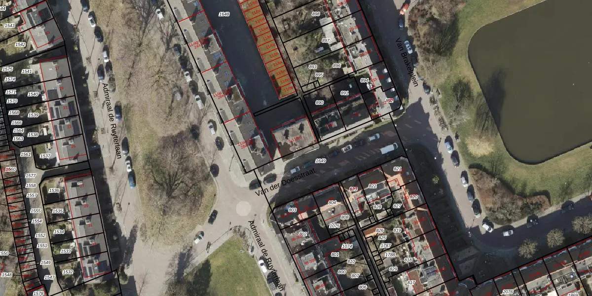 Het perceel waarop Van der Doesstraat 9 staat heeft een oppervlakte van 2260 m². Dit is een zeer groot perceel. De perceeloppervlakte wordt geregistreerd door het Kadaster. Gedetailleerde informatie over de maten van dit perceel kunt u vinden in het rapport Kadastrale kaart met maatvoering van Van der Doesstraat 9.