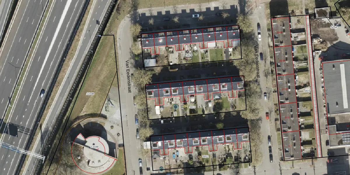 Het perceel waarop Van Eedenstraat 28 staat heeft een oppervlakte van 1130 m². Dit is een zeer groot perceel. De perceeloppervlakte wordt geregistreerd door het Kadaster. Gedetailleerde informatie over de maten van dit perceel kunt u vinden in het rapport Kadastrale kaart met maatvoering van Van Eedenstraat 28.
