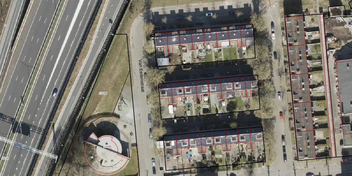Het perceel waarop Van Eedenstraat 30 staat heeft een oppervlakte van 1130 m². Dit is een zeer groot perceel. De perceeloppervlakte wordt geregistreerd door het Kadaster. Gedetailleerde informatie over de maten van dit perceel kunt u vinden in het rapport Kadastrale kaart met maatvoering van Van Eedenstraat 30.