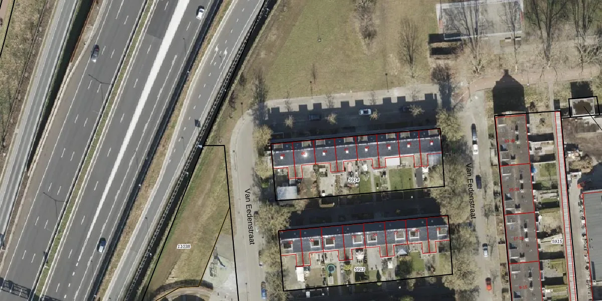 Het perceel waarop Van Eedenstraat 46 staat heeft een oppervlakte van 1100 m². Dit is een zeer groot perceel. De perceeloppervlakte wordt geregistreerd door het Kadaster. Gedetailleerde informatie over de maten van dit perceel kunt u vinden in het rapport Kadastrale kaart met maatvoering van Van Eedenstraat 46.