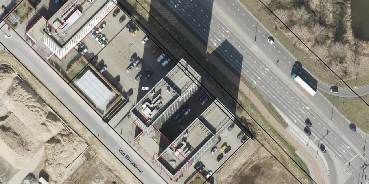 Het perceel waarop Van Elmptstraat 16-10 staat heeft een oppervlakte van 4430 m². Dit is een zeer groot perceel. De perceeloppervlakte wordt geregistreerd door het Kadaster. Gedetailleerde informatie over de maten van dit perceel kunt u vinden in het rapport Kadastrale kaart met maatvoering van Van Elmptstraat 16-10.