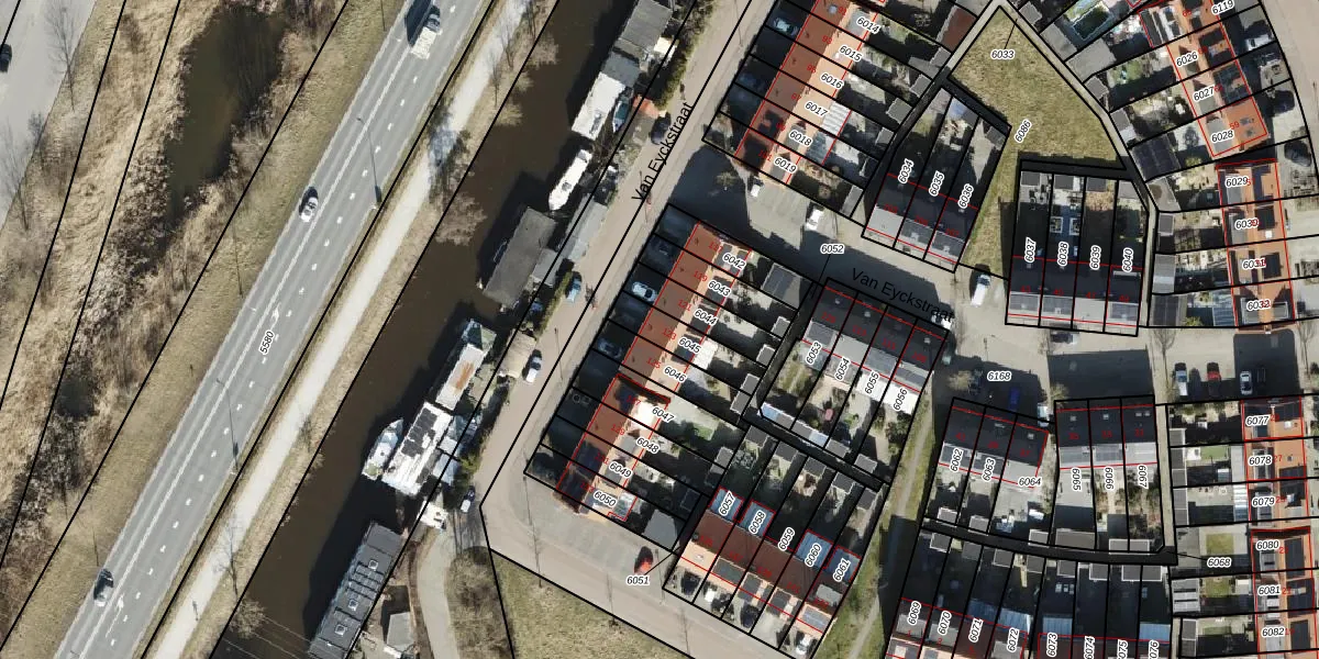 Van Eyckstraat 123 is gelegen op kadastraal perceel GNG01AB6045. Deze kadastrale aanduiding is uniek en wordt gebruikt door het Kadaster om eigendomsrechten en andere zakelijke rechten vast te leggen. Het perceel maakt onderdeel uit van de kadastrale gemeente Groningen.