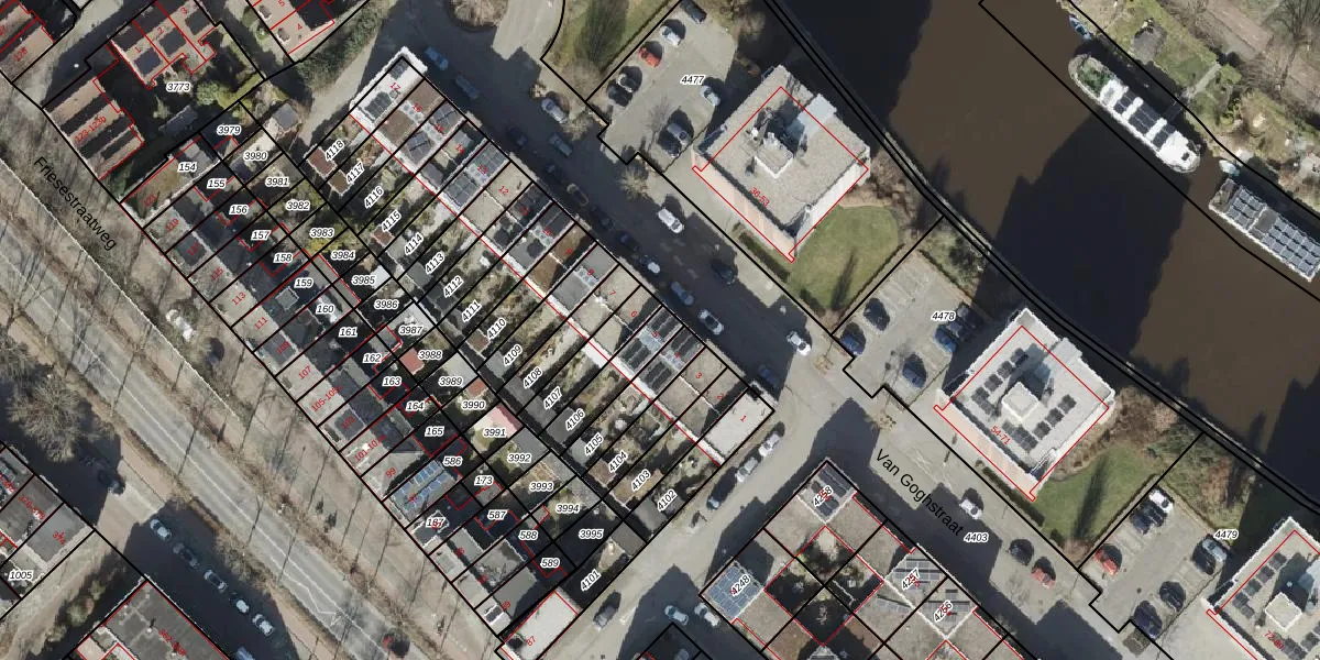 Van Goghstraat 5 is gelegen op kadastraal perceel GNG00L4106. Deze kadastrale aanduiding is uniek en wordt gebruikt door het Kadaster om eigendomsrechten en andere zakelijke rechten vast te leggen. Het perceel maakt onderdeel uit van de kadastrale gemeente Groningen.