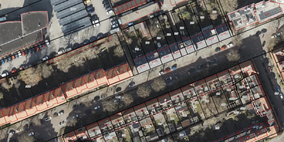 Het perceel waarop Van Heemskerckstraat 35 staat heeft een oppervlakte van 303 m². Dit is een groot perceel. De perceeloppervlakte wordt geregistreerd door het Kadaster. Gedetailleerde informatie over de maten van dit perceel kunt u vinden in het rapport Kadastrale kaart met maatvoering van Van Heemskerckstraat 35.