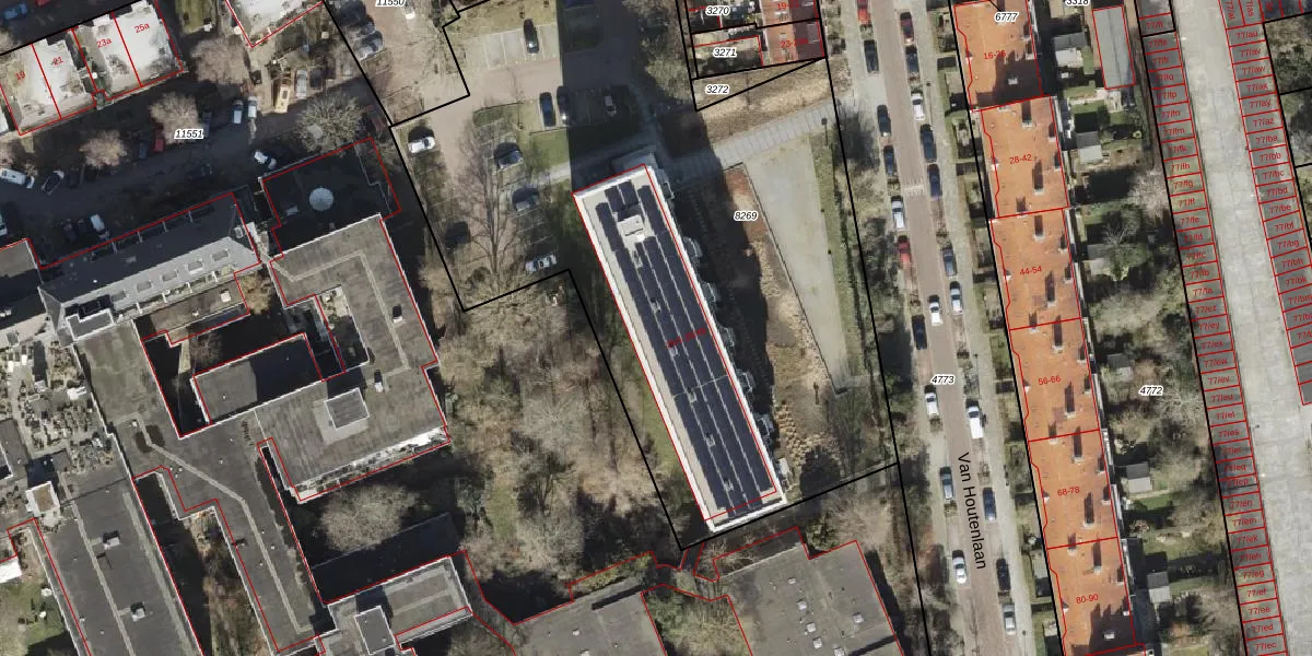 Van Houtenlaan 25-35 is gelegen op kadastraal perceel HMN02M8269. Deze kadastrale aanduiding is uniek en wordt gebruikt door het Kadaster om eigendomsrechten en andere zakelijke rechten vast te leggen. Het perceel maakt onderdeel uit van de kadastrale gemeente Helpman.