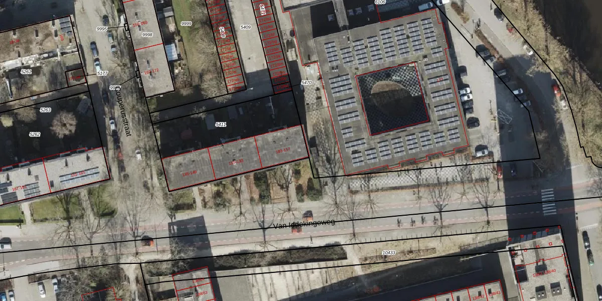 Het perceel waarop Van Iddekingeweg 117 staat heeft een oppervlakte van 1102 m². Dit is een zeer groot perceel. De perceeloppervlakte wordt geregistreerd door het Kadaster. Gedetailleerde informatie over de maten van dit perceel kunt u vinden in het rapport Kadastrale kaart met maatvoering van Van Iddekingeweg 117.