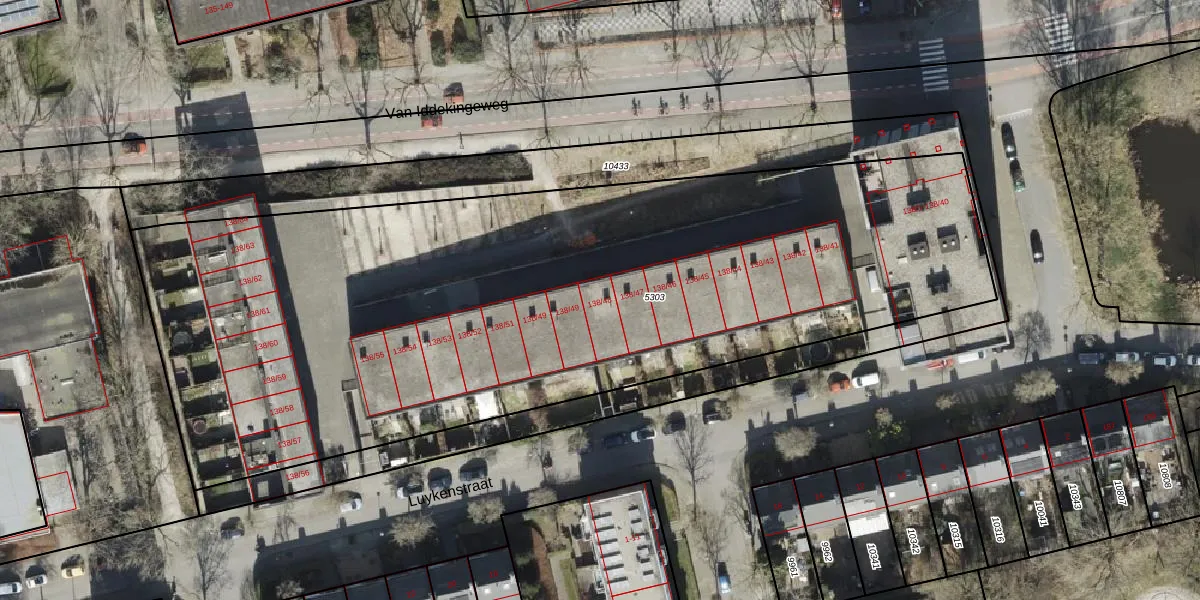 Het perceel waarop Van Iddekingeweg 138-48 staat heeft een oppervlakte van 4832 m². Dit is een zeer groot perceel. De perceeloppervlakte wordt geregistreerd door het Kadaster. Gedetailleerde informatie over de maten van dit perceel kunt u vinden in het rapport Kadastrale kaart met maatvoering van Van Iddekingeweg 138-48.