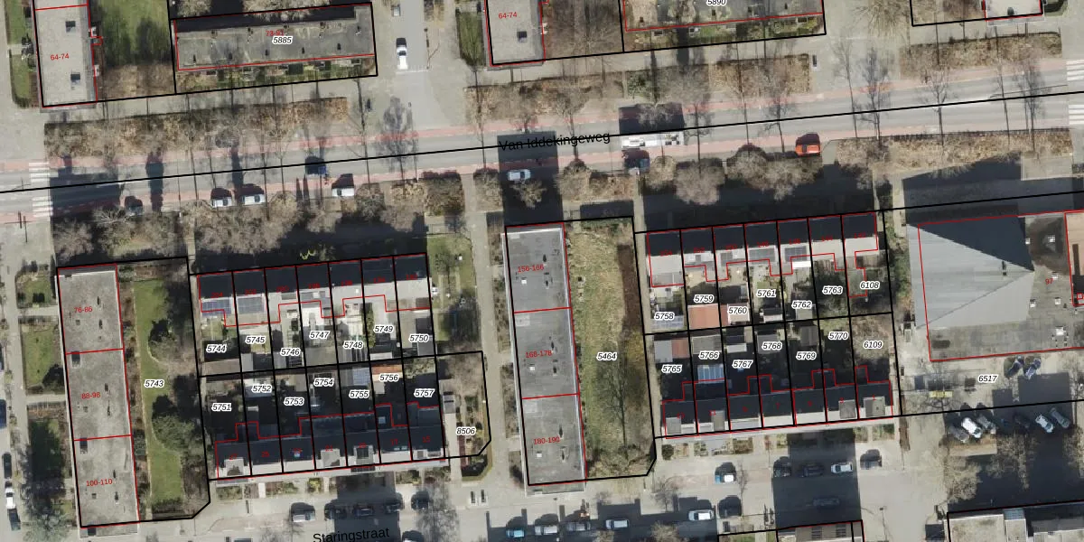 Het perceel waarop Van Iddekingeweg 164 staat heeft een oppervlakte van 1150 m². Dit is een zeer groot perceel. De perceeloppervlakte wordt geregistreerd door het Kadaster. Gedetailleerde informatie over de maten van dit perceel kunt u vinden in het rapport Kadastrale kaart met maatvoering van Van Iddekingeweg 164.
