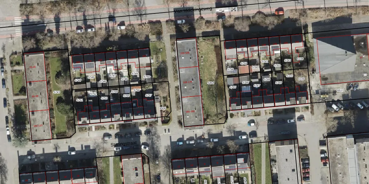 Het perceel waarop Van Iddekingeweg 172 staat heeft een oppervlakte van 1150 m². Dit is een zeer groot perceel. De perceeloppervlakte wordt geregistreerd door het Kadaster. Gedetailleerde informatie over de maten van dit perceel kunt u vinden in het rapport Kadastrale kaart met maatvoering van Van Iddekingeweg 172.