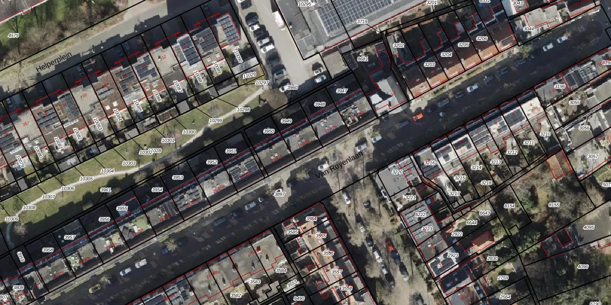 Van Royenlaan 19 is gelegen op kadastraal perceel HMN02M3949. Deze kadastrale aanduiding is uniek en wordt gebruikt door het Kadaster om eigendomsrechten en andere zakelijke rechten vast te leggen. Het perceel maakt onderdeel uit van de kadastrale gemeente Helpman.