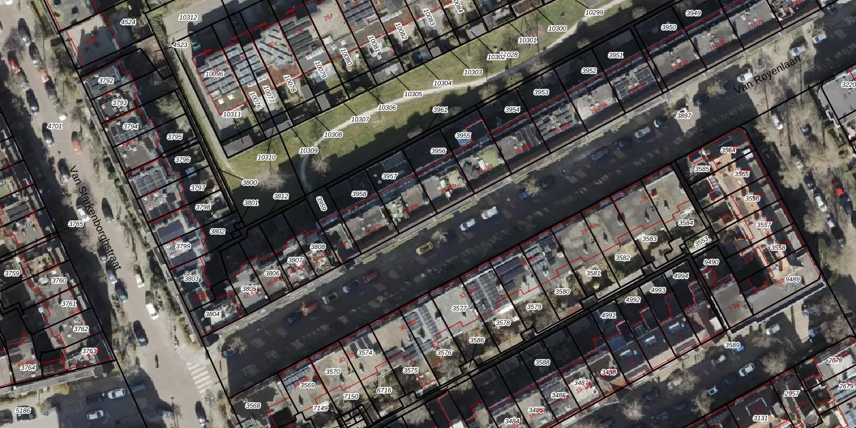 Van Royenlaan 35-b is gelegen op kadastraal perceel HMN02M3957. Deze kadastrale aanduiding is uniek en wordt gebruikt door het Kadaster om eigendomsrechten en andere zakelijke rechten vast te leggen. Het perceel maakt onderdeel uit van de kadastrale gemeente Helpman.