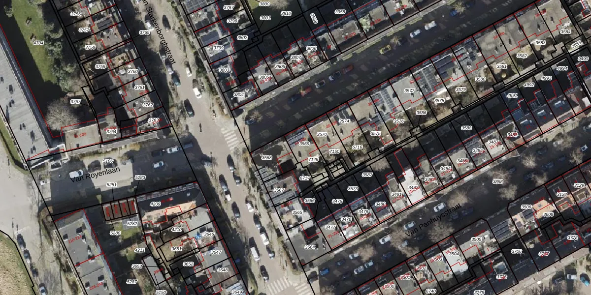 Het perceel waarop Van Royenlaan 44-a staat heeft een oppervlakte van 143 m². Dit is een middelgroot perceel. De perceeloppervlakte wordt geregistreerd door het Kadaster. Gedetailleerde informatie over de maten van dit perceel kunt u vinden in het rapport Kadastrale kaart met maatvoering van Van Royenlaan 44-a.