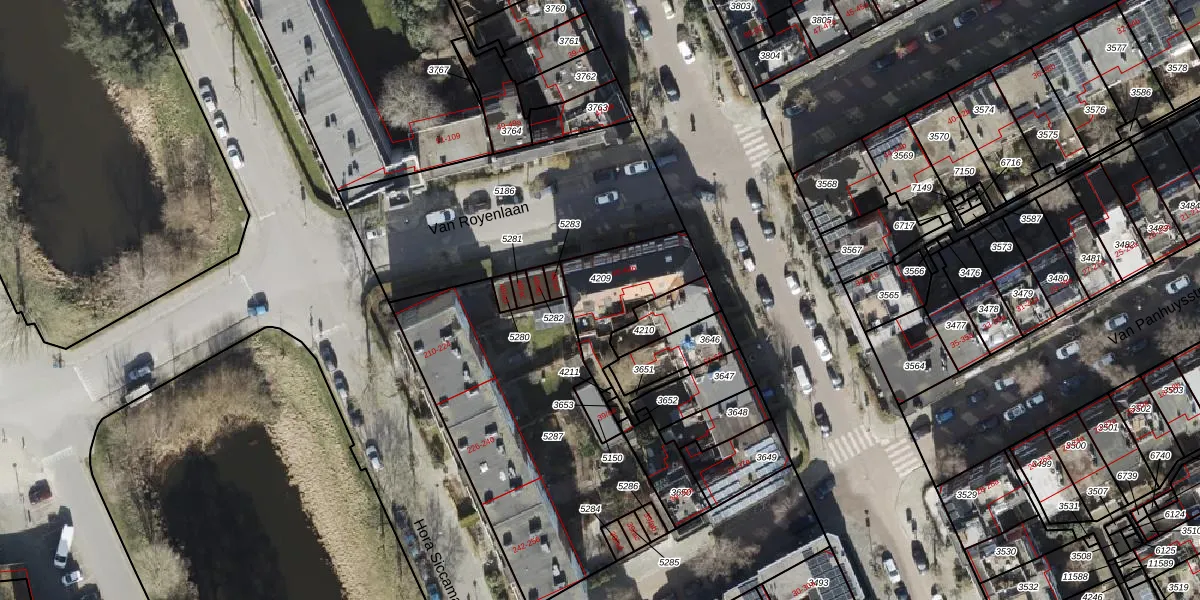 Het perceel waarop Van Royenlaan 46-b staat heeft een oppervlakte van 278 m². Dit is een middelgroot perceel. De perceeloppervlakte wordt geregistreerd door het Kadaster. Gedetailleerde informatie over de maten van dit perceel kunt u vinden in het rapport Kadastrale kaart met maatvoering van Van Royenlaan 46-b.