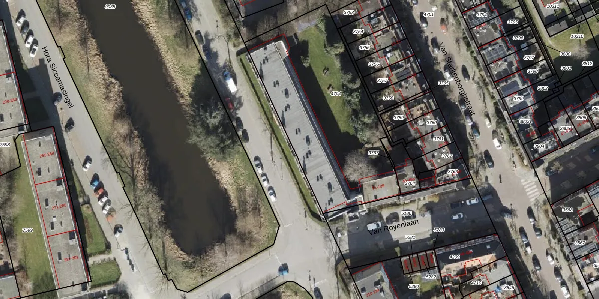 Van Royenlaan 61 is gelegen op kadastraal perceel HMN02M4704. Deze kadastrale aanduiding is uniek en wordt gebruikt door het Kadaster om eigendomsrechten en andere zakelijke rechten vast te leggen. Het perceel maakt onderdeel uit van de kadastrale gemeente Helpman.