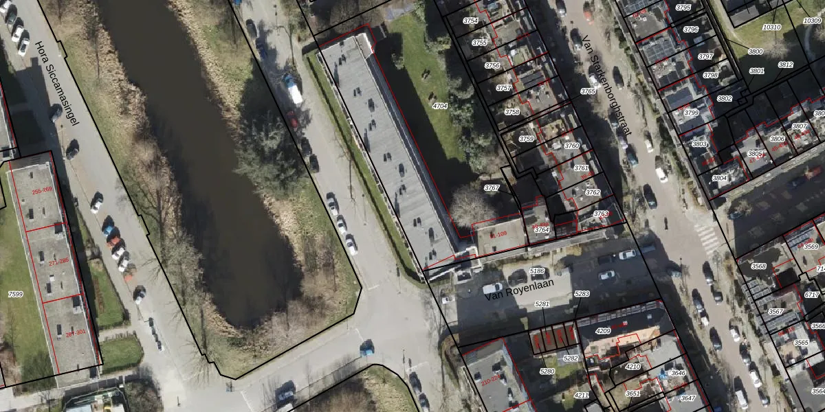 Van Royenlaan 95 is gelegen op kadastraal perceel HMN02M4704. Deze kadastrale aanduiding is uniek en wordt gebruikt door het Kadaster om eigendomsrechten en andere zakelijke rechten vast te leggen. Het perceel maakt onderdeel uit van de kadastrale gemeente Helpman.