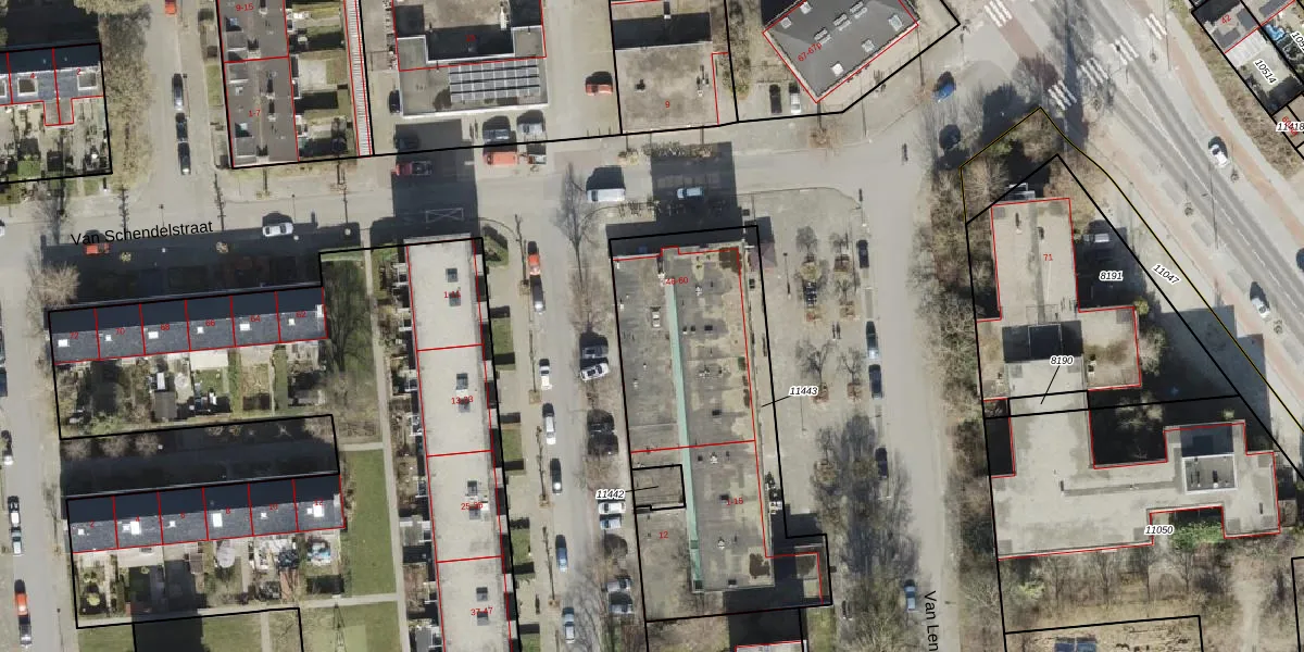 Het perceel waarop Van Schendelstraat 48-b staat heeft een oppervlakte van 1371 m². Dit is een zeer groot perceel. De perceeloppervlakte wordt geregistreerd door het Kadaster. Gedetailleerde informatie over de maten van dit perceel kunt u vinden in het rapport Kadastrale kaart met maatvoering van Van Schendelstraat 48-b.