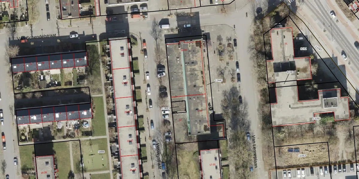 Het perceel waarop Van Schendelstraat 52-b staat heeft een oppervlakte van 1371 m². Dit is een zeer groot perceel. De perceeloppervlakte wordt geregistreerd door het Kadaster. Gedetailleerde informatie over de maten van dit perceel kunt u vinden in het rapport Kadastrale kaart met maatvoering van Van Schendelstraat 52-b.