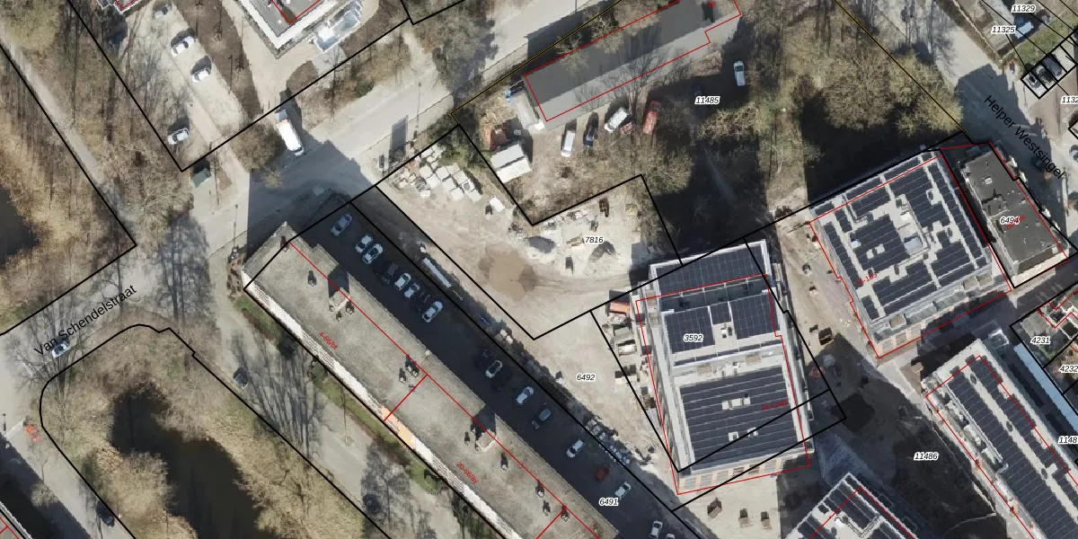Van Schendelstraat 6-33 is gelegen op kadastraal perceel HMN02M7816. Deze kadastrale aanduiding is uniek en wordt gebruikt door het Kadaster om eigendomsrechten en andere zakelijke rechten vast te leggen. Het perceel maakt onderdeel uit van de kadastrale gemeente Helpman.