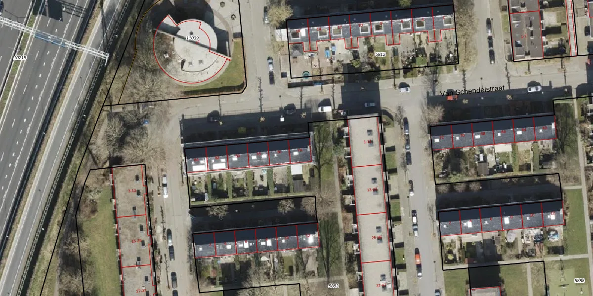 Het perceel waarop Van Schendelstraat 74 staat heeft een oppervlakte van 4588 m². Dit is een zeer groot perceel. De perceeloppervlakte wordt geregistreerd door het Kadaster. Gedetailleerde informatie over de maten van dit perceel kunt u vinden in het rapport Kadastrale kaart met maatvoering van Van Schendelstraat 74.