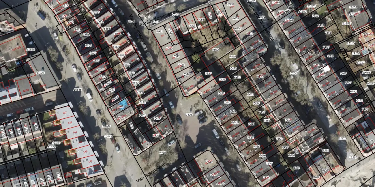 Het perceel waarop het adres ligt is GNG00-B-7437. De afkorting 'GNG00' staat voor kadastrale gemeente Groningen. Het perceel is 190 m² groot. Dat is kleiner dan de gemiddelde perceeloppervlakte in Groningen, dat op 770,65 m² ligt. Het kleinste perceel in de kadastrale gemeente is 0 m² groot. De grootste perceeloppervlakte is 31,8 ha. Er zijn 3 adressen aanwezig op het perceel. In de Basisregistratie Kadaster (BRK) werden de grenzen van het perceel geregistreerd op 29-07-2003.