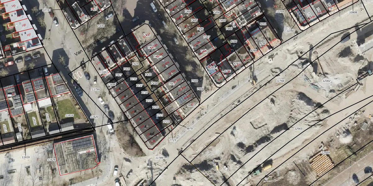 Het perceel waarop Van Sijsenstraat 65 staat heeft een oppervlakte van 82 m². Dit is een klein perceel. De perceeloppervlakte wordt geregistreerd door het Kadaster. Gedetailleerde informatie over de maten van dit perceel kunt u vinden in het rapport Kadastrale kaart met maatvoering van Van Sijsenstraat 65.
