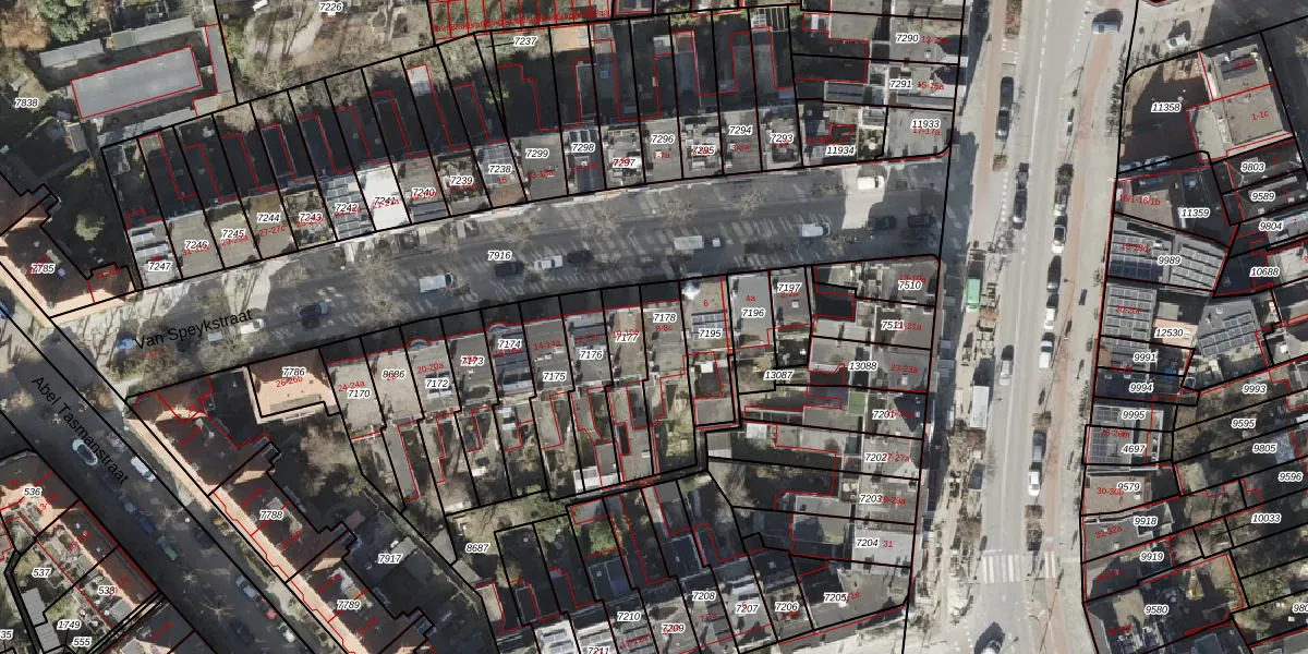 Het perceel waarop Van Speykstraat 8 staat heeft een oppervlakte van 185 m². Dit is een middelgroot perceel. De perceeloppervlakte wordt geregistreerd door het Kadaster. Gedetailleerde informatie over de maten van dit perceel kunt u vinden in het rapport Kadastrale kaart met maatvoering van Van Speykstraat 8.