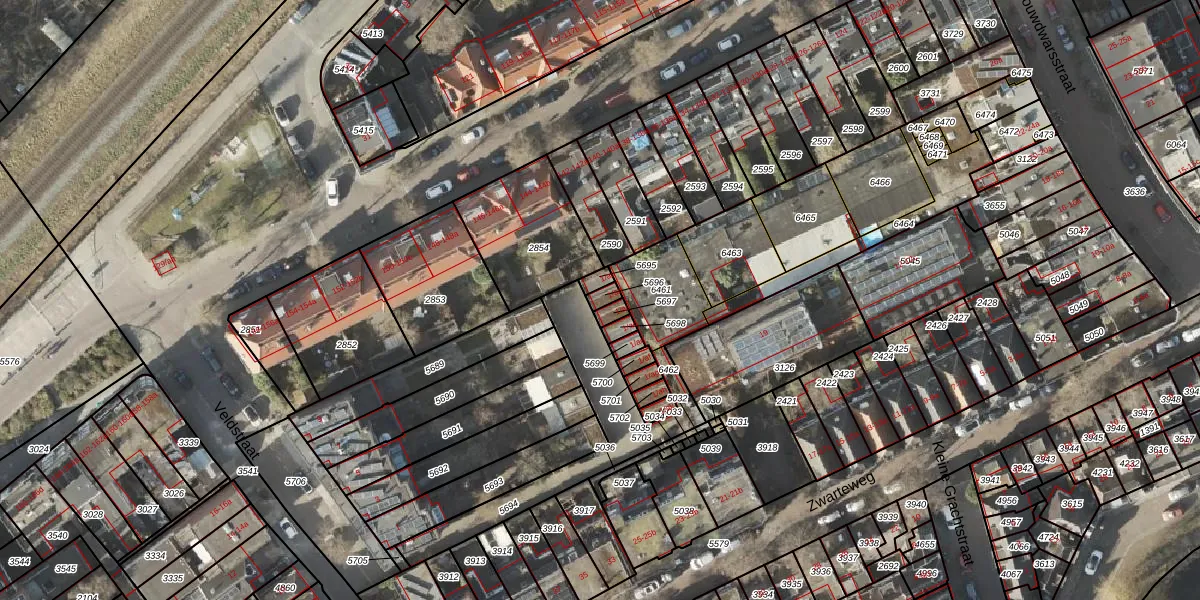 Gebruik de zoekbalk of klik op een perceel voor informatie over de adressen binnen dit perceel.