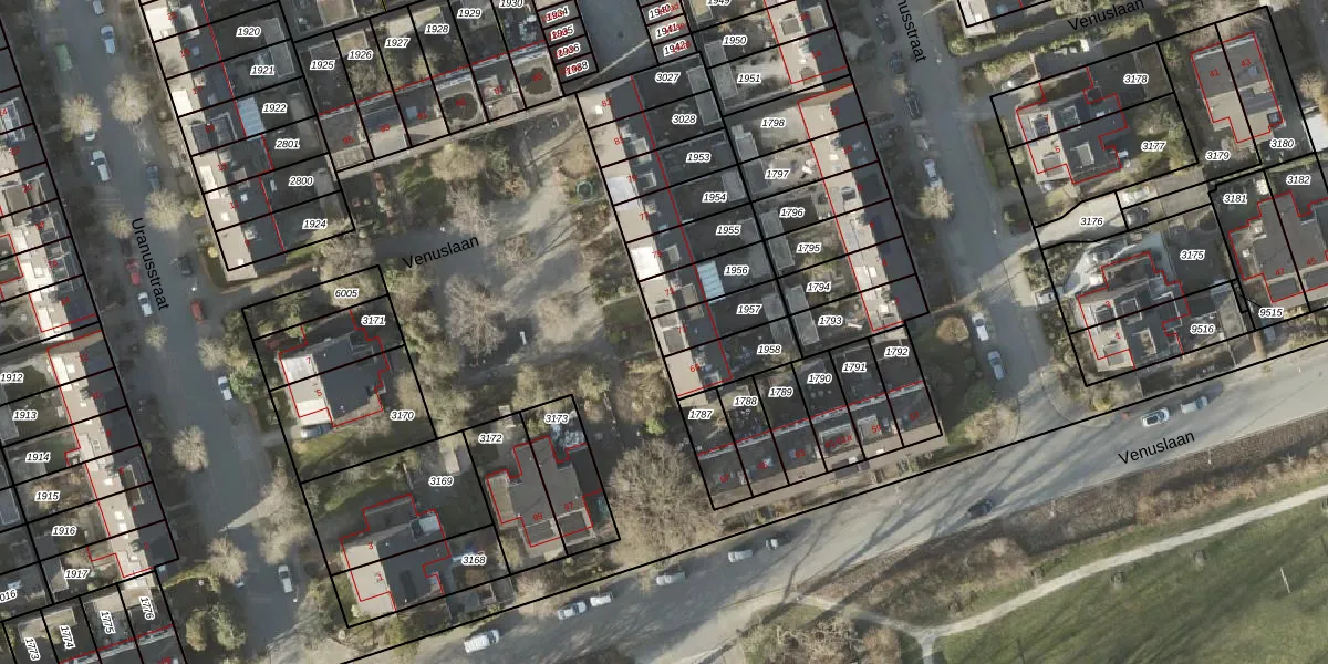 Het perceel waarop Venuslaan 71 staat heeft een oppervlakte van 119 m². Dit is een middelgroot perceel. De perceeloppervlakte wordt geregistreerd door het Kadaster. Gedetailleerde informatie over de maten van dit perceel kunt u vinden in het rapport Kadastrale kaart met maatvoering van Venuslaan 71.