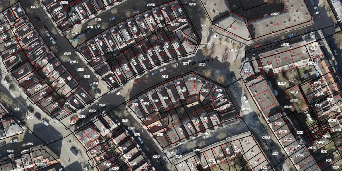 Verlengde Frederikstraat 13-a is gelegen op kadastraal perceel GNG00B6114. Deze kadastrale aanduiding is uniek en wordt gebruikt door het Kadaster om eigendomsrechten en andere zakelijke rechten vast te leggen. Het perceel maakt onderdeel uit van de kadastrale gemeente Groningen.