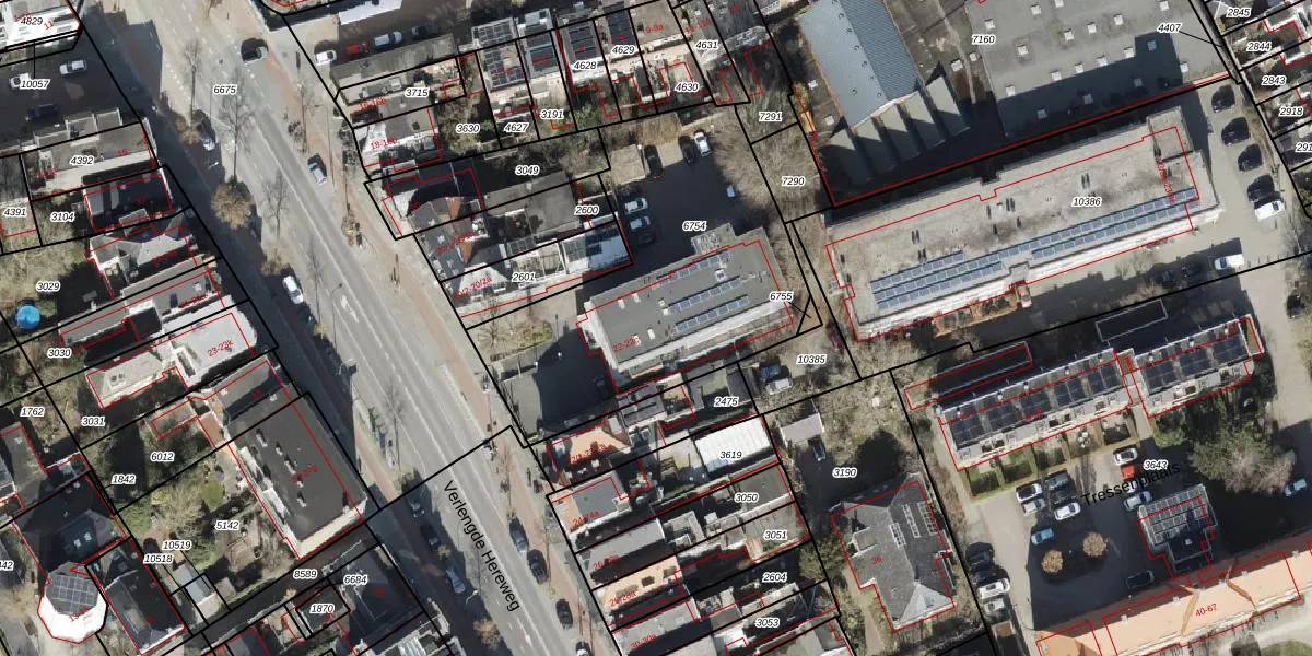 Het perceel waarop Verlengde Hereweg 22-c staat heeft een oppervlakte van 1408 m². Dit is een zeer groot perceel. De perceeloppervlakte wordt geregistreerd door het Kadaster. Gedetailleerde informatie over de maten van dit perceel kunt u vinden in het rapport Kadastrale kaart met maatvoering van Verlengde Hereweg 22-c.