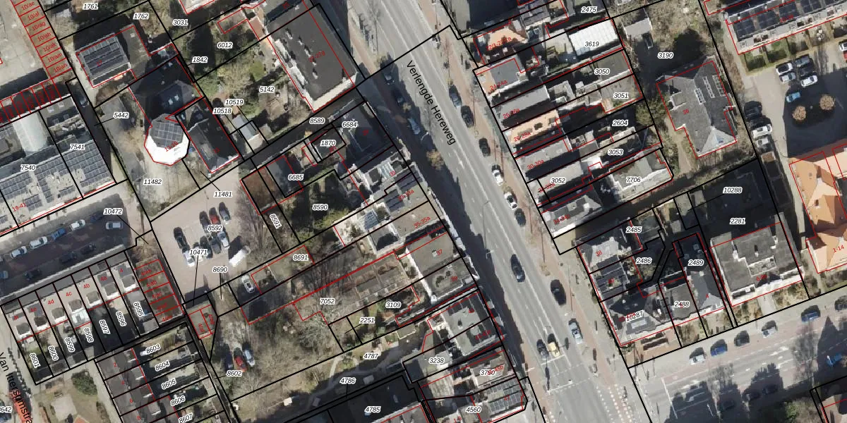Het perceel waarop Verlengde Hereweg 35 staat heeft een oppervlakte van 1078 m². Dit is een zeer groot perceel. De perceeloppervlakte wordt geregistreerd door het Kadaster. Gedetailleerde informatie over de maten van dit perceel kunt u vinden in het rapport Kadastrale kaart met maatvoering van Verlengde Hereweg 35.