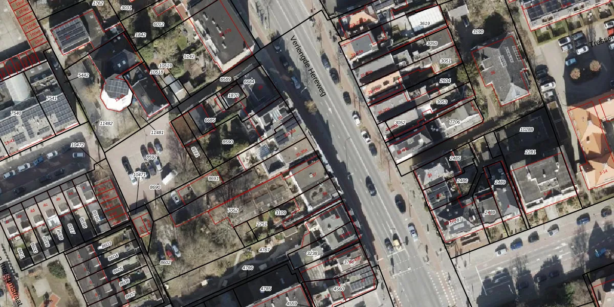 Het perceel waarop Verlengde Hereweg 35-a staat heeft een oppervlakte van 1078 m². Dit is een zeer groot perceel. De perceeloppervlakte wordt geregistreerd door het Kadaster. Gedetailleerde informatie over de maten van dit perceel kunt u vinden in het rapport Kadastrale kaart met maatvoering van Verlengde Hereweg 35-a.