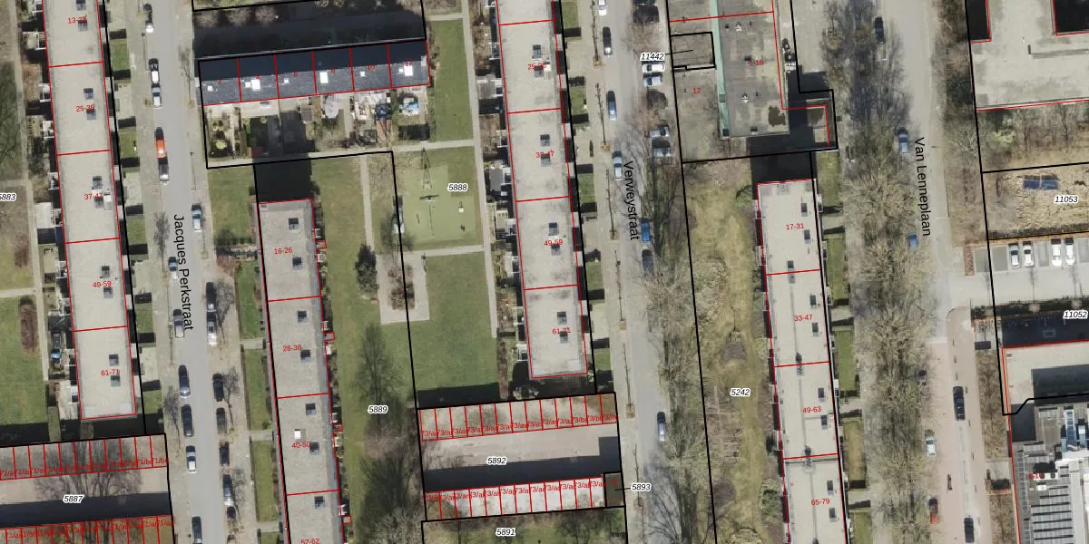 Het perceel waarop Verweystraat 59 staat heeft een oppervlakte van 4595 m². Dit is een zeer groot perceel. De perceeloppervlakte wordt geregistreerd door het Kadaster. Gedetailleerde informatie over de maten van dit perceel kunt u vinden in het rapport Kadastrale kaart met maatvoering van Verweystraat 59.