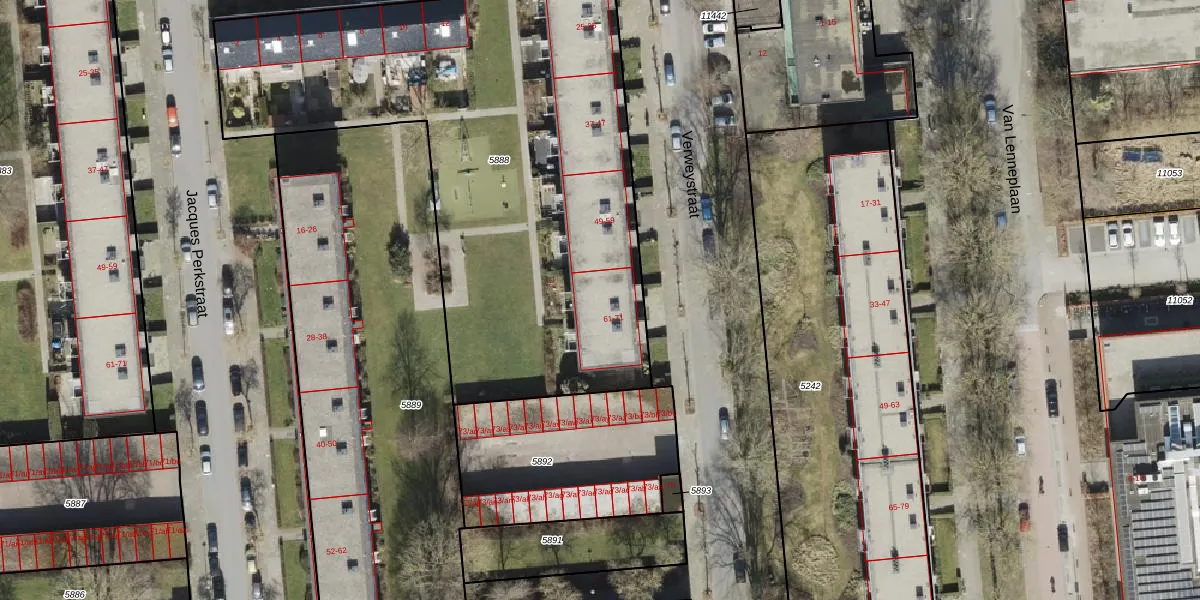 Het perceel waarop Verweystraat 67 staat heeft een oppervlakte van 4595 m². Dit is een zeer groot perceel. De perceeloppervlakte wordt geregistreerd door het Kadaster. Gedetailleerde informatie over de maten van dit perceel kunt u vinden in het rapport Kadastrale kaart met maatvoering van Verweystraat 67.