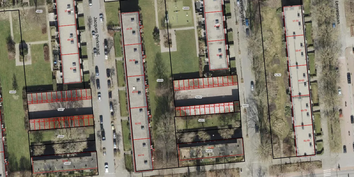 Het perceel waarop Verweystraat 73-aq staat heeft een oppervlakte van 744 m². Dit is een groot perceel. De perceeloppervlakte wordt geregistreerd door het Kadaster. Gedetailleerde informatie over de maten van dit perceel kunt u vinden in het rapport Kadastrale kaart met maatvoering van Verweystraat 73-aq.