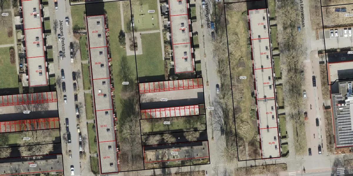Het perceel waarop Verweystraat 73-ax staat heeft een oppervlakte van 744 m². Dit is een groot perceel. De perceeloppervlakte wordt geregistreerd door het Kadaster. Gedetailleerde informatie over de maten van dit perceel kunt u vinden in het rapport Kadastrale kaart met maatvoering van Verweystraat 73-ax.