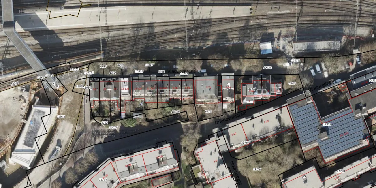 Viaductstraat 8-b is gelegen op kadastraal perceel GNG00C10319. Deze kadastrale aanduiding is uniek en wordt gebruikt door het Kadaster om eigendomsrechten en andere zakelijke rechten vast te leggen. Het perceel maakt onderdeel uit van de kadastrale gemeente Groningen.