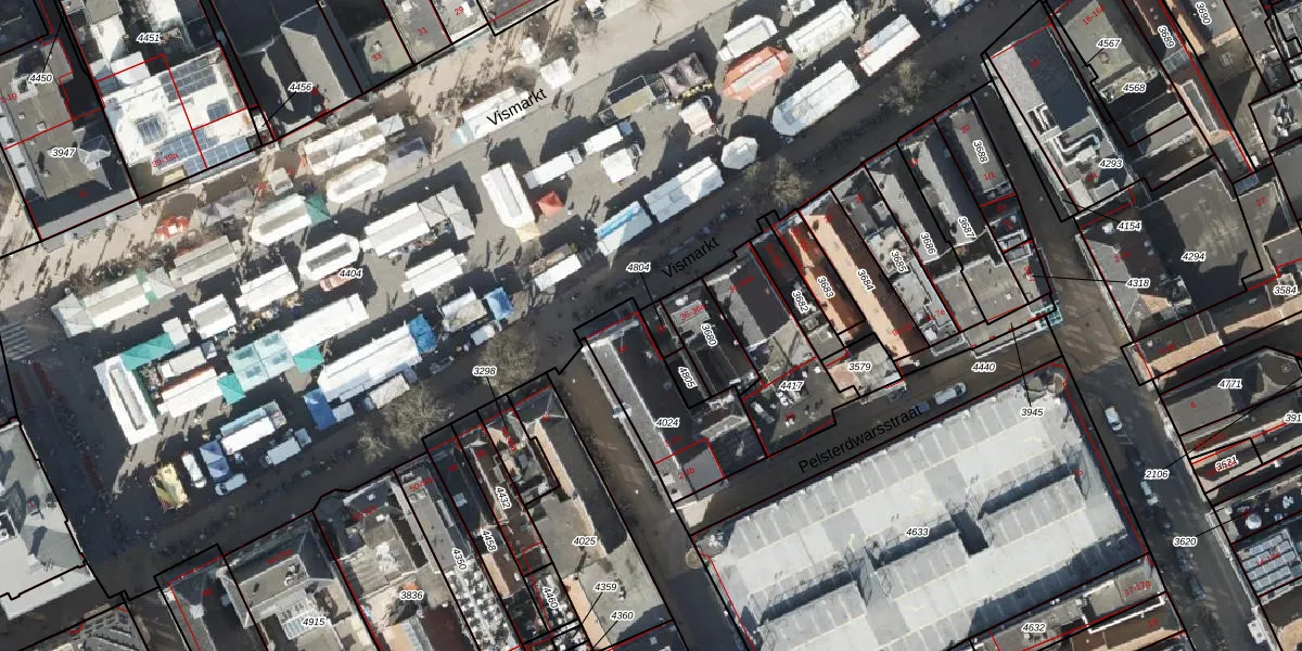 Het perceel waarop Vismarkt 38 staat heeft een oppervlakte van 36 m². Dit is een klein perceel. De perceeloppervlakte wordt geregistreerd door het Kadaster. Gedetailleerde informatie over de maten van dit perceel kunt u vinden in het rapport Kadastrale kaart met maatvoering van Vismarkt 38.