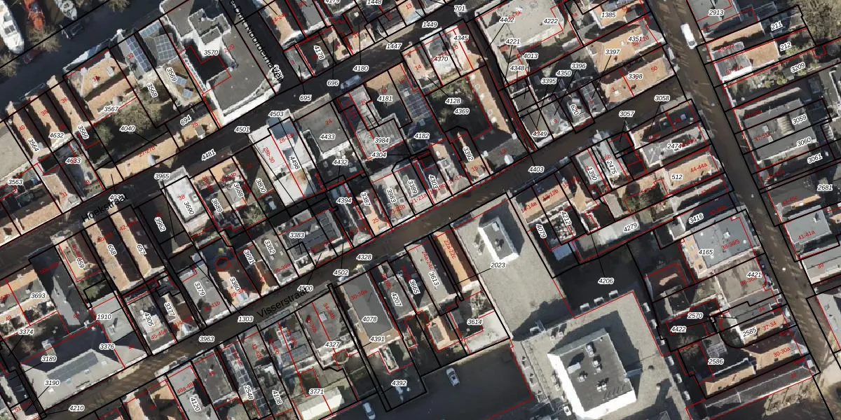 Het perceel waarop Visserstraat 21-a staat heeft een oppervlakte van 63 m². Dit is een klein perceel. De perceeloppervlakte wordt geregistreerd door het Kadaster. Gedetailleerde informatie over de maten van dit perceel kunt u vinden in het rapport Kadastrale kaart met maatvoering van Visserstraat 21-a.