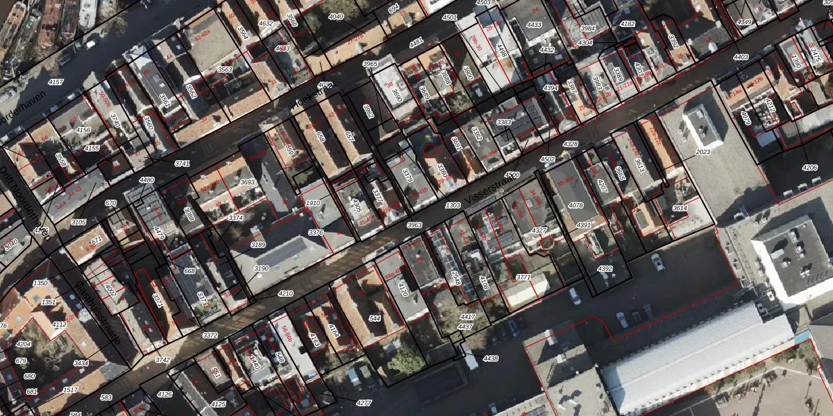 Visserstraat 41 is gelegen op kadastraal perceel GNG00K3379. Deze kadastrale aanduiding is uniek en wordt gebruikt door het Kadaster om eigendomsrechten en andere zakelijke rechten vast te leggen. Het perceel maakt onderdeel uit van de kadastrale gemeente Groningen.