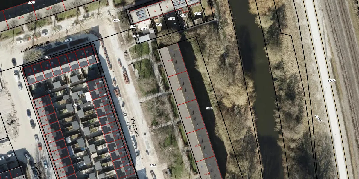 Het perceel waarop Vlierstraat 73 staat heeft een oppervlakte van 1854 m². Dit is een zeer groot perceel. De perceeloppervlakte wordt geregistreerd door het Kadaster. Gedetailleerde informatie over de maten van dit perceel kunt u vinden in het rapport Kadastrale kaart met maatvoering van Vlierstraat 73.