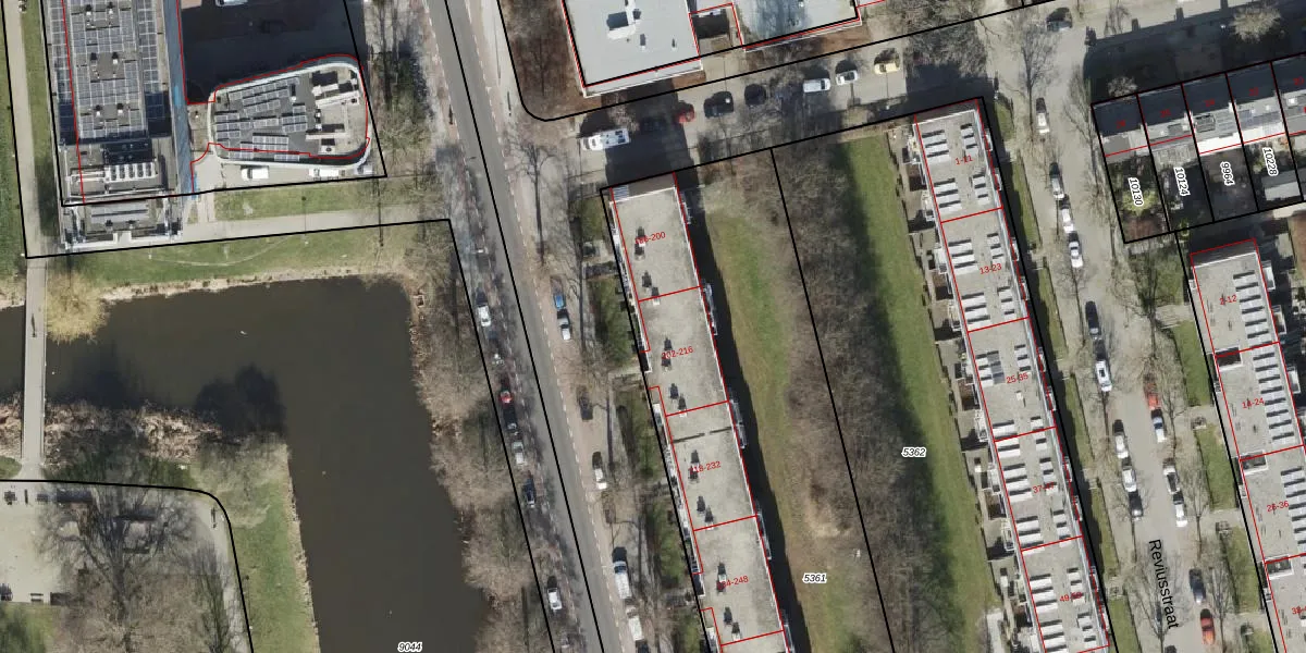 Het perceel waarop Vondellaan 202 staat heeft een oppervlakte van 3864 m². Dit is een zeer groot perceel. De perceeloppervlakte wordt geregistreerd door het Kadaster. Gedetailleerde informatie over de maten van dit perceel kunt u vinden in het rapport Kadastrale kaart met maatvoering van Vondellaan 202.