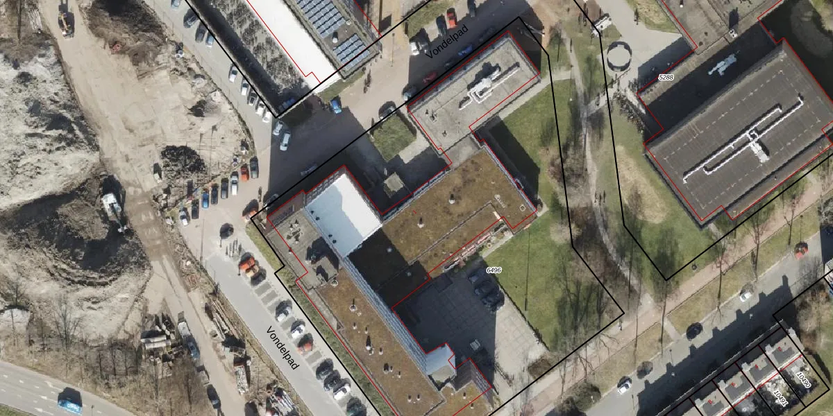 Het perceel waarop Vondelpad 1 staat heeft een oppervlakte van 5115 m². Dit is een zeer groot perceel. De perceeloppervlakte wordt geregistreerd door het Kadaster. Gedetailleerde informatie over de maten van dit perceel kunt u vinden in het rapport Kadastrale kaart met maatvoering van Vondelpad 1.