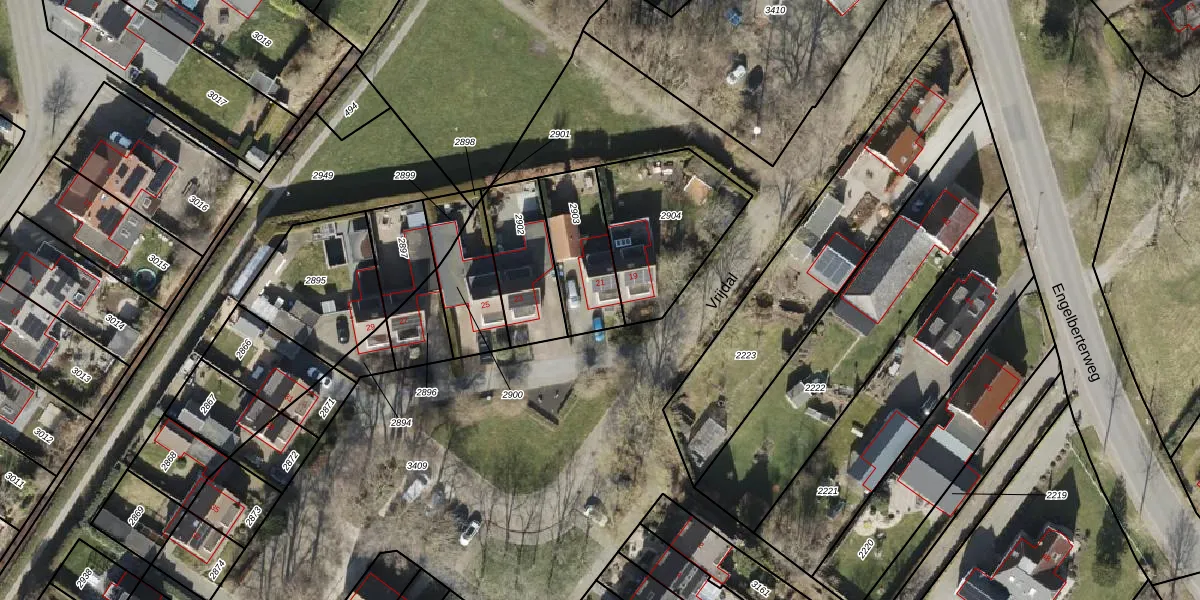 Het perceel waarop Vrijdal 21 staat heeft een oppervlakte van 263 m². Dit is een middelgroot perceel. De perceeloppervlakte wordt geregistreerd door het Kadaster. Gedetailleerde informatie over de maten van dit perceel kunt u vinden in het rapport Kadastrale kaart met maatvoering van Vrijdal 21.